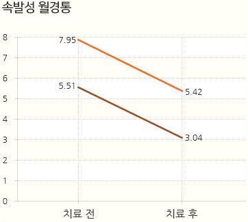 월경통이 호전됐고 원발성, 속발성 월경통 모두 통증이 유의미하게 감소