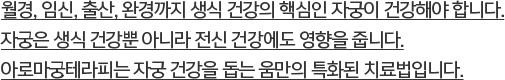 또한 자궁질환 외에도 스트레스성 질환, 만성 통증질환에도 도움이 됩니다.
